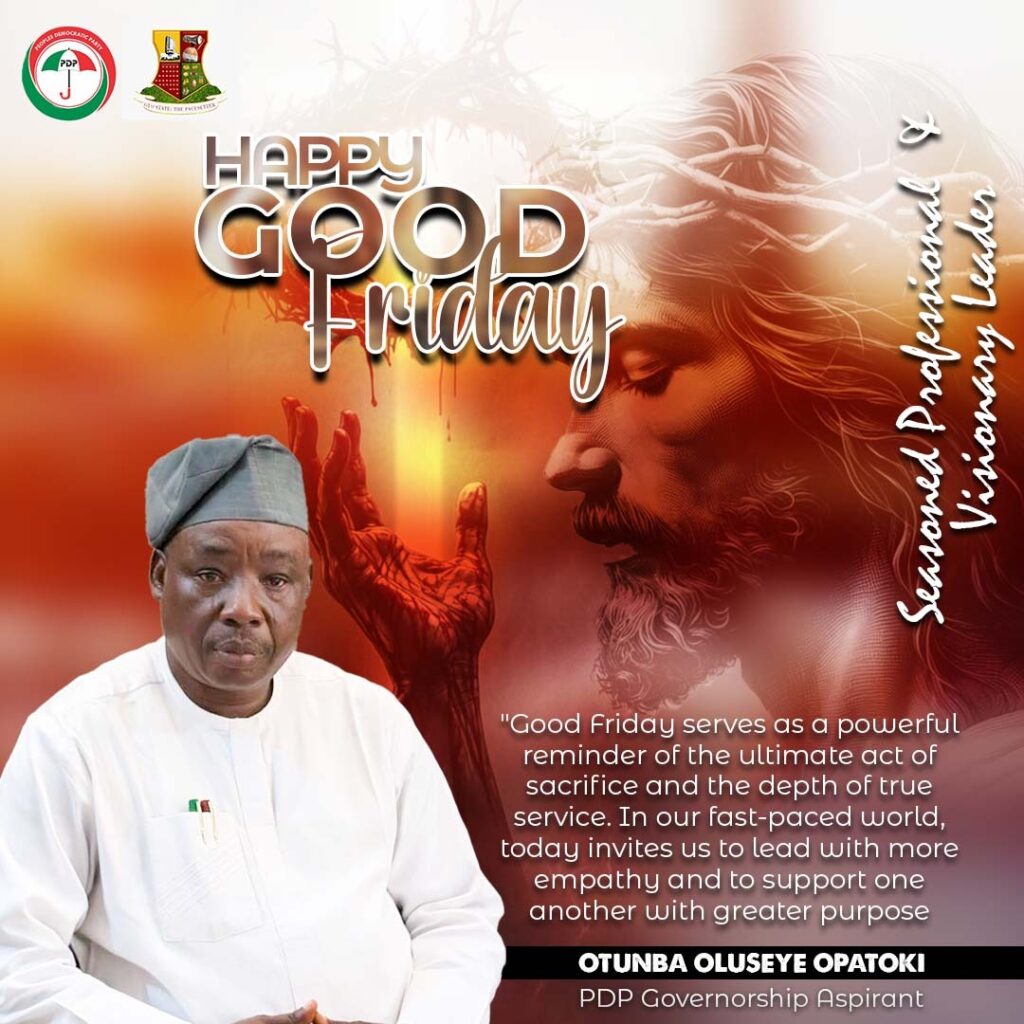 Ibadan, Oyo State – As Christians across Oyo State and the world commemorate Good Friday, a day that marks the crucifixion and sacrificial death of Jesus Christ, Otunba Oluseye Oladosu Opatoki, a prominent political leader and governorship aspirant for the 2027 elections in Oyo State, has extended his heartfelt felicitations to the good people of the state, urging them to imbibe the enduring lessons of love, sacrifice, and hope that the season represents.