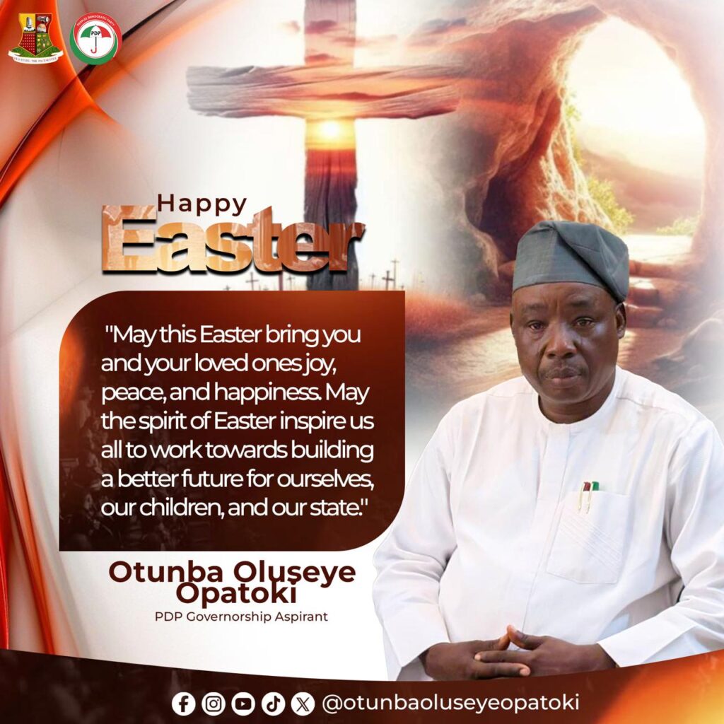 Ibadan, Oyo State – As Christians around the world celebrate the joyous occasion of Easter Sunday, Otunba Oluseye Opatoki, the governorship aspirant for Oyo State in the 2027 elections, has extended his warmest felicitations to the good people of Oyo State.