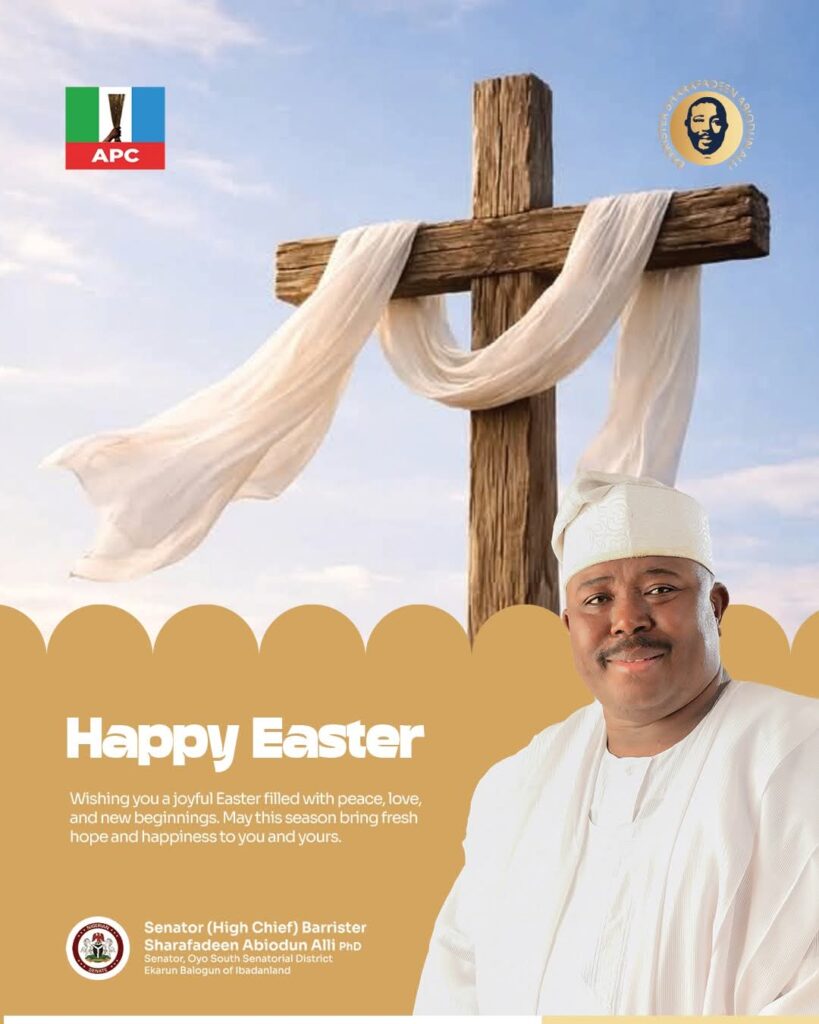 Senator (Dr) Sharafadeen Alli (APC-Oyo South) has felicitated Christians in Oyo State and beyond on the occasion of Easter, calling on them to embrace its core message of hope, sacrifice and renewal.