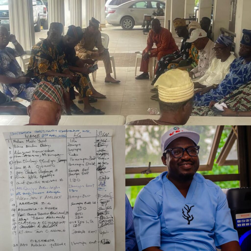 Adedeji secured the party’s ticket following a decisive endorsement by apex leaders of the constituency during a strategic stakeholders’ meeting held earlier today at the Speaker’s Lodge. The gathering brought together prominent political leaders, elders, and stakeholders from both Ido and Ibarapa East Local Government Areas, and was widely described as a defining moment for the party’s leadership direction ahead of the forthcoming elections.